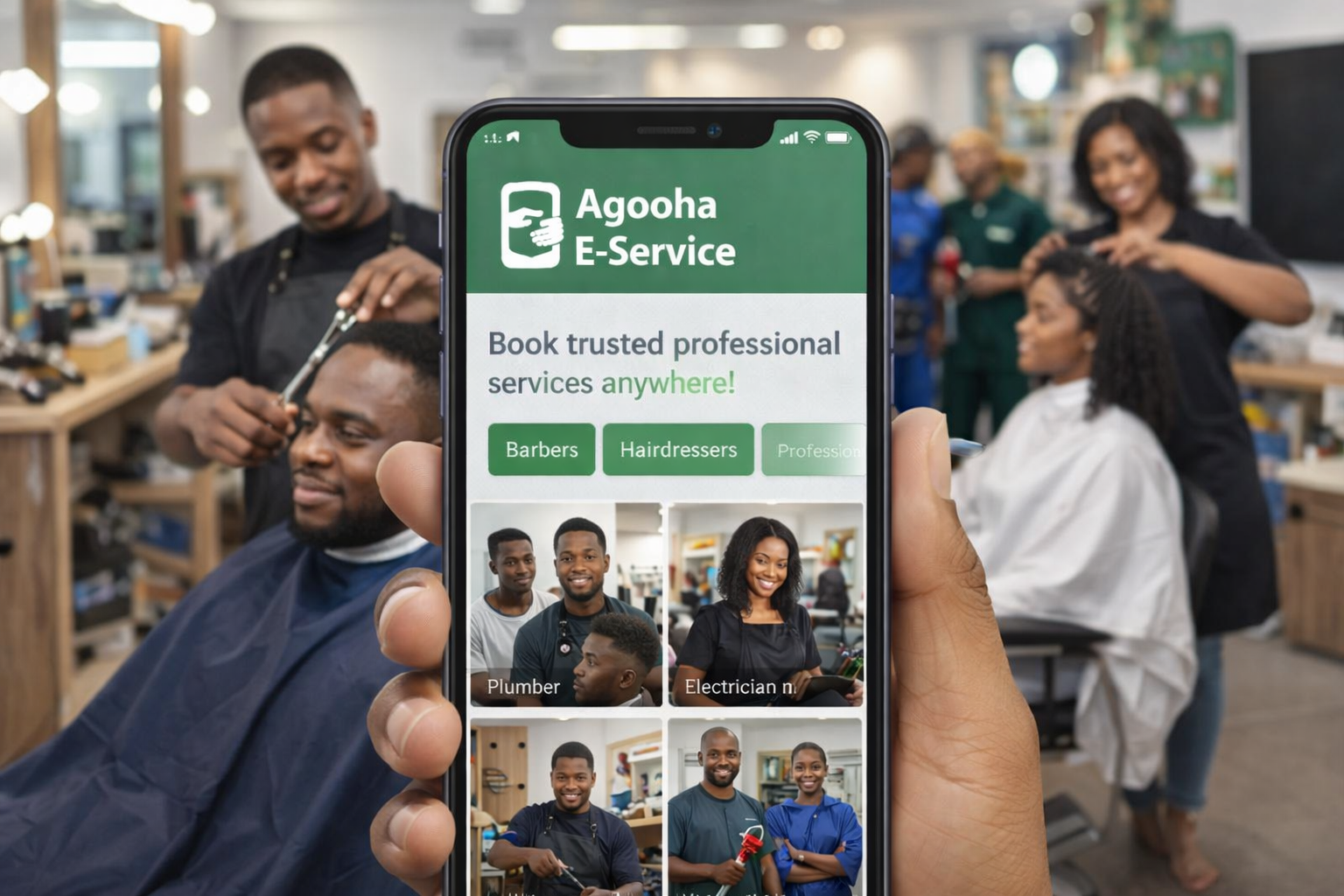 Agooha E-Service connects users to trusted service providers like barbers, hairdressers, and other professionals. We make it easy to book, access, and enjoy quality services anytime, anywhere.